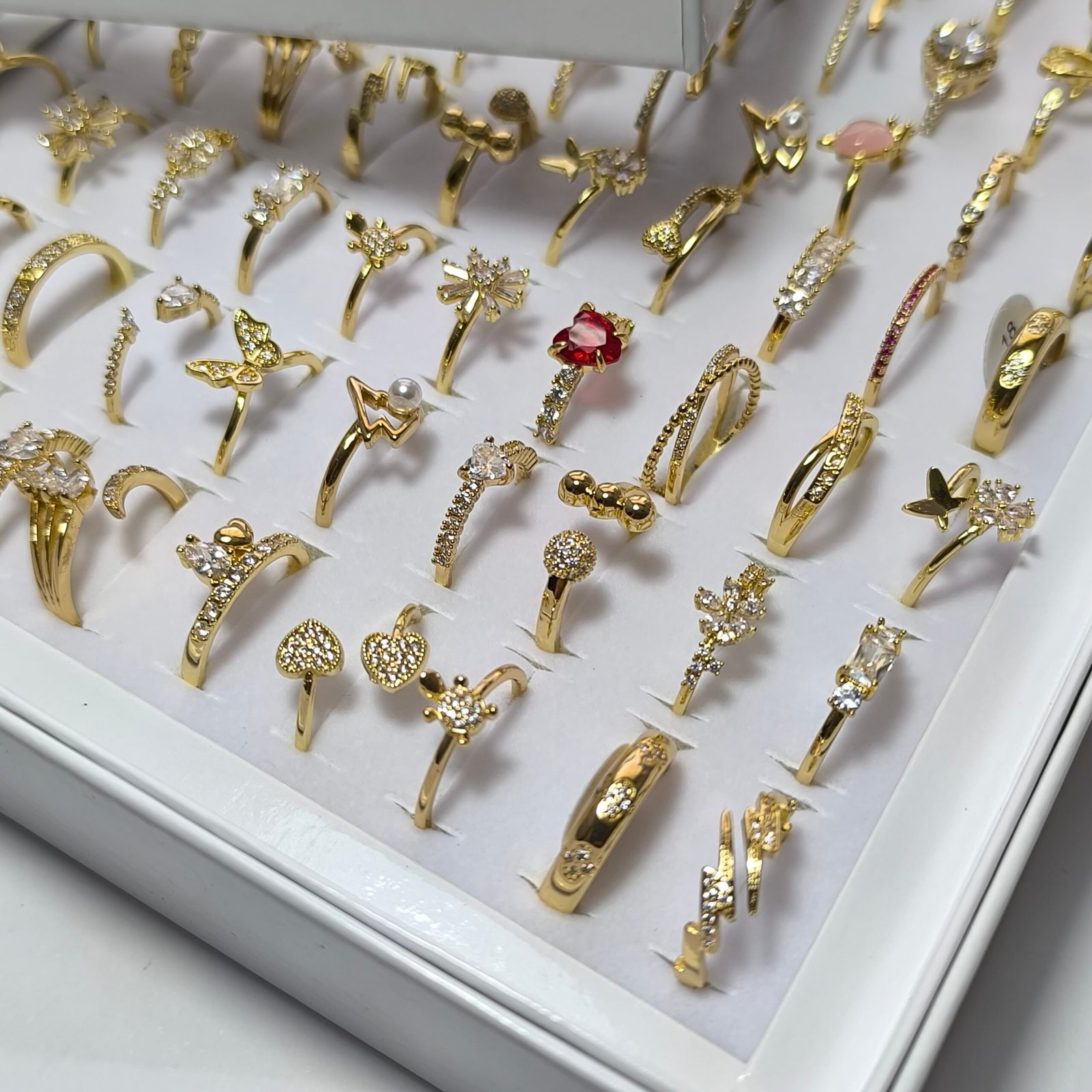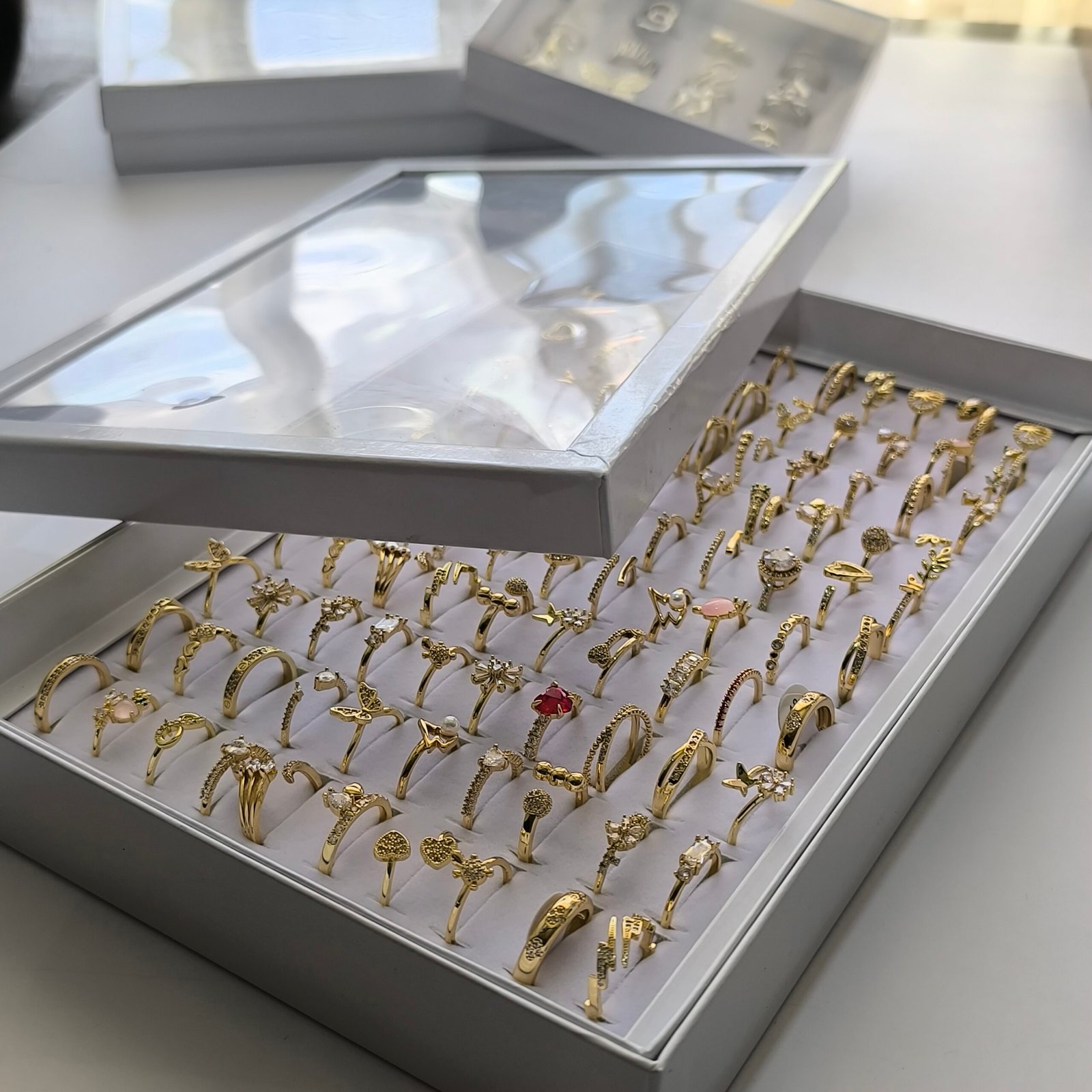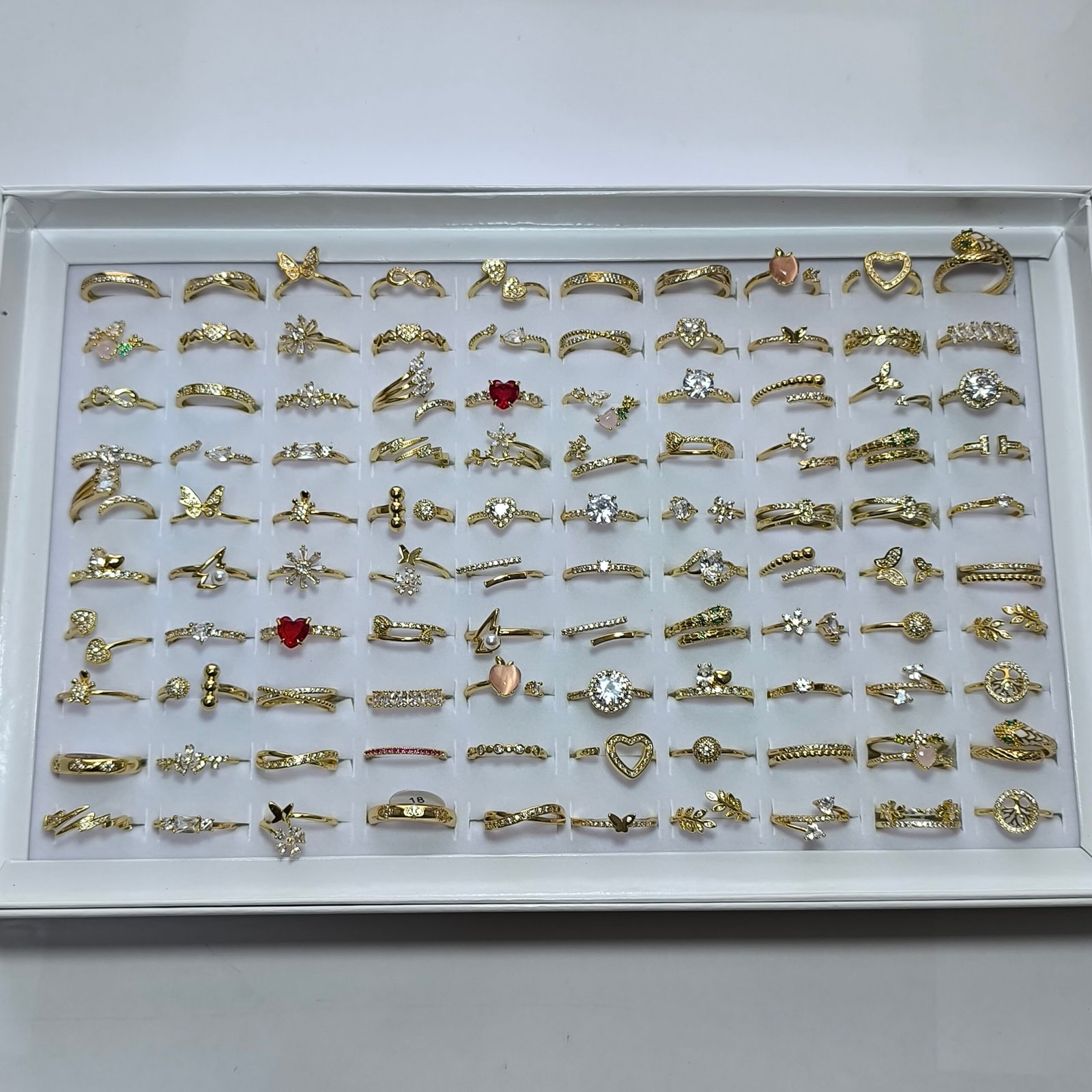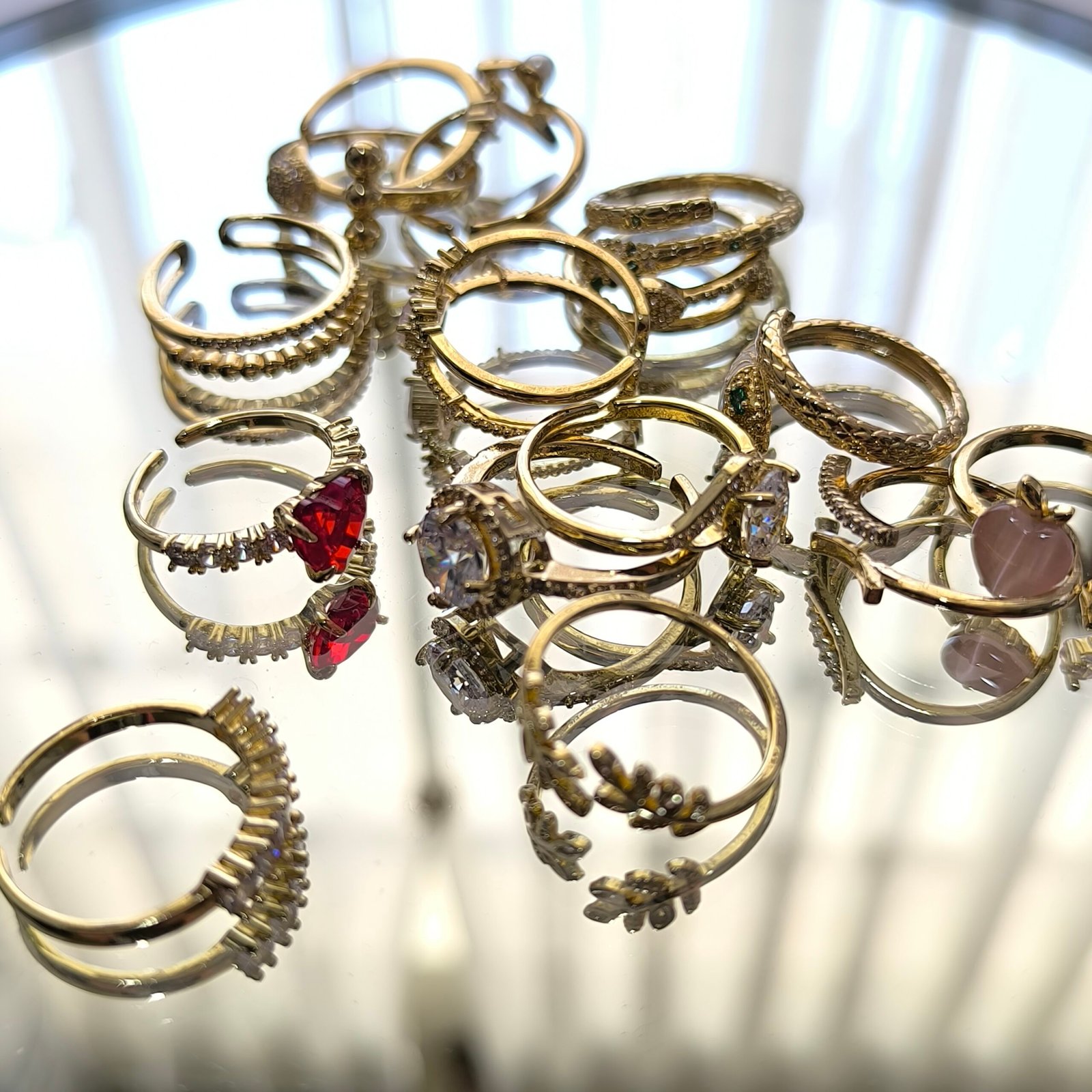 Este set incluye 100 anillos dorados de acero inoxidable, diseñados para ofrecer brillo duradero, resistencia y una apariencia elegante en cada pieza. Su diseño ajustable permite adaptarse fácilmente a diferentes tallas.