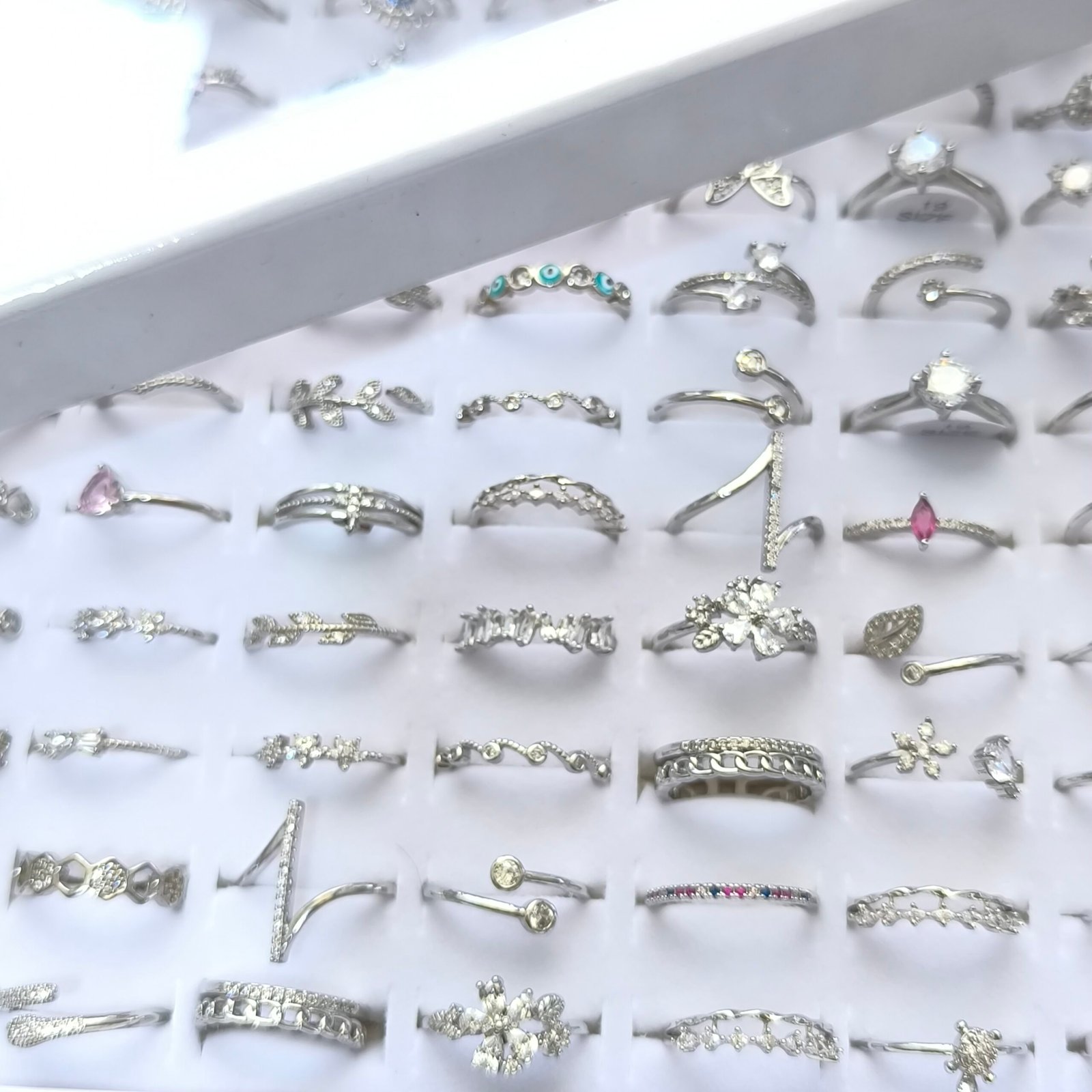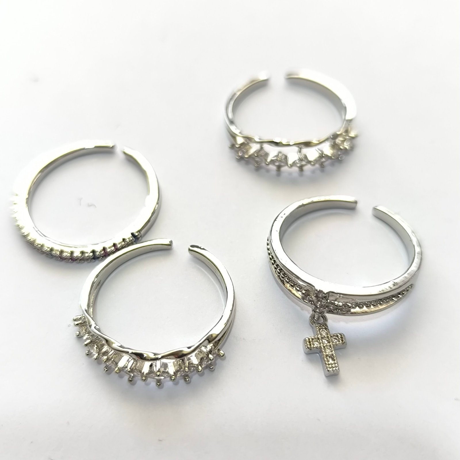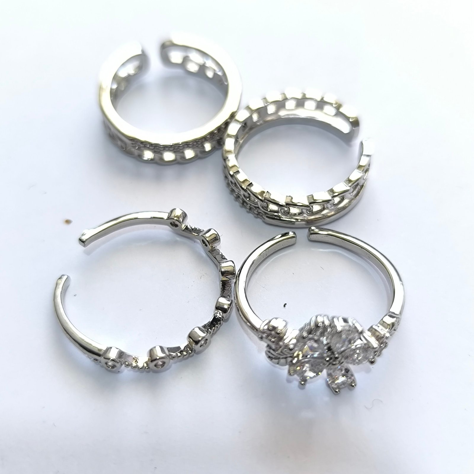 | Nombre del producto | Set de 100 anillos plateados delicados surtidos — Coleccion 4 Simbolos y Piedras |