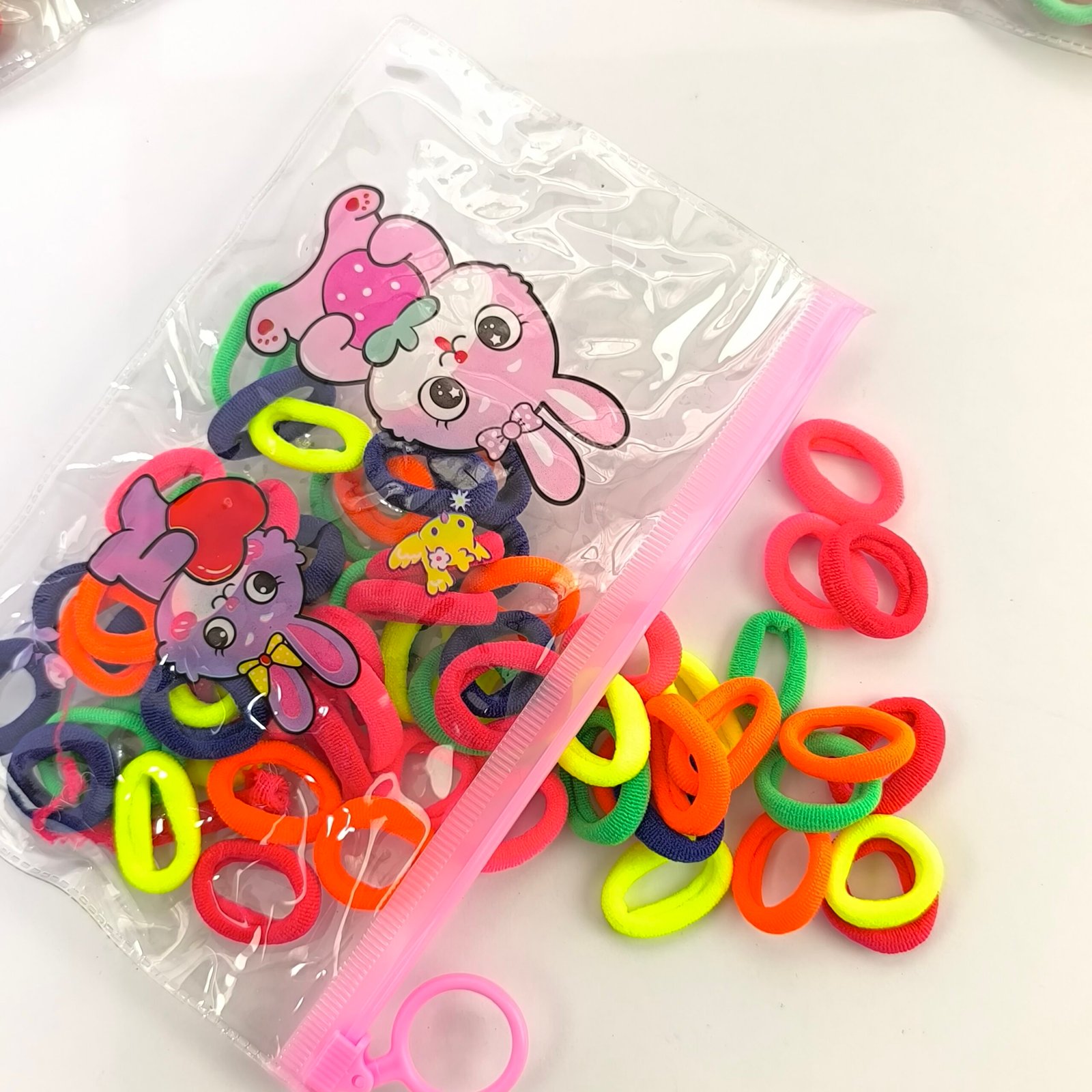Incluye 12 bolsitas con ligas elásticas en colores vibrantes, perfectas para niñas, jovencitas o uso diario en casa o colegio.