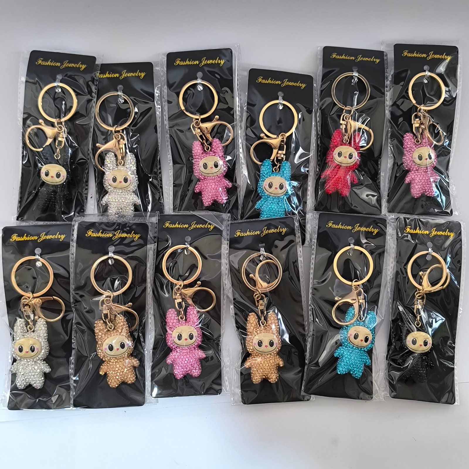 Este set de llaveros kawaii destaca por su diseño tipo muñeco con acabado brillante que capta la atención al instante, ideal para ventas impulsivas en tienda física o por internet.