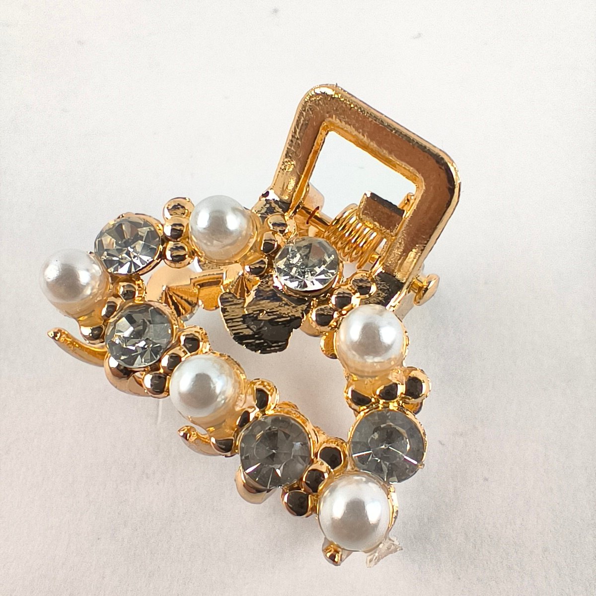 Pinza y Pirañita Metálica Decorativa con Cristales y Perlas para Cabello
