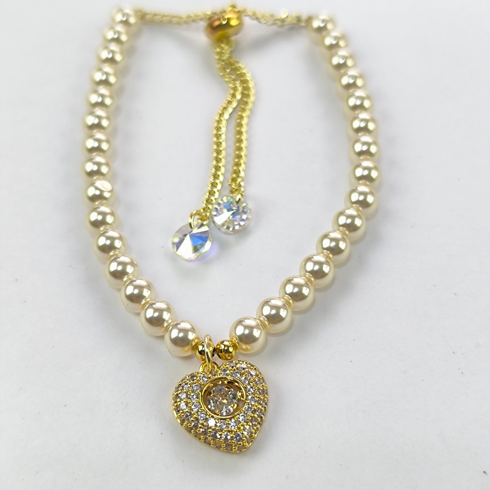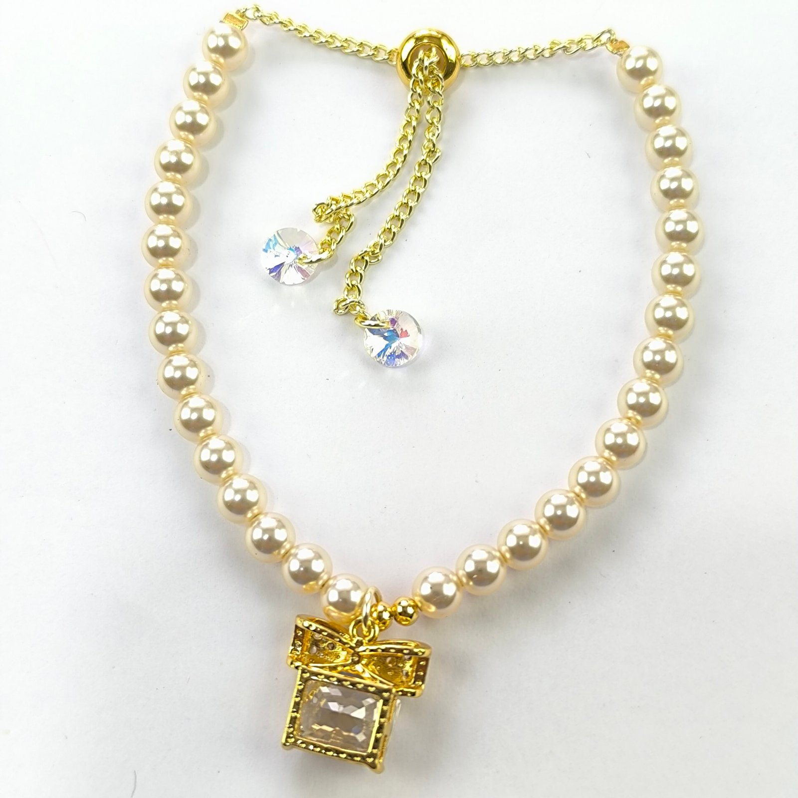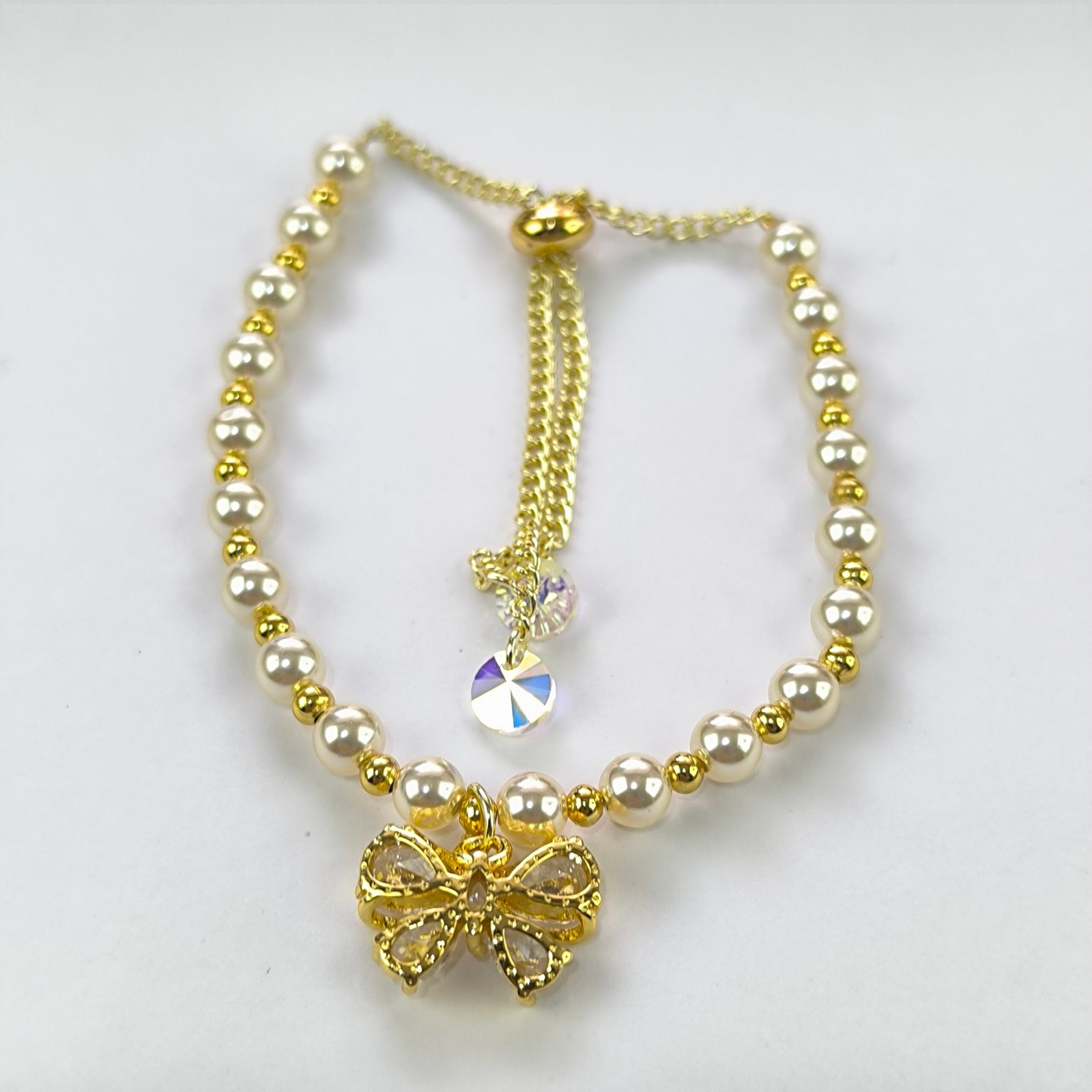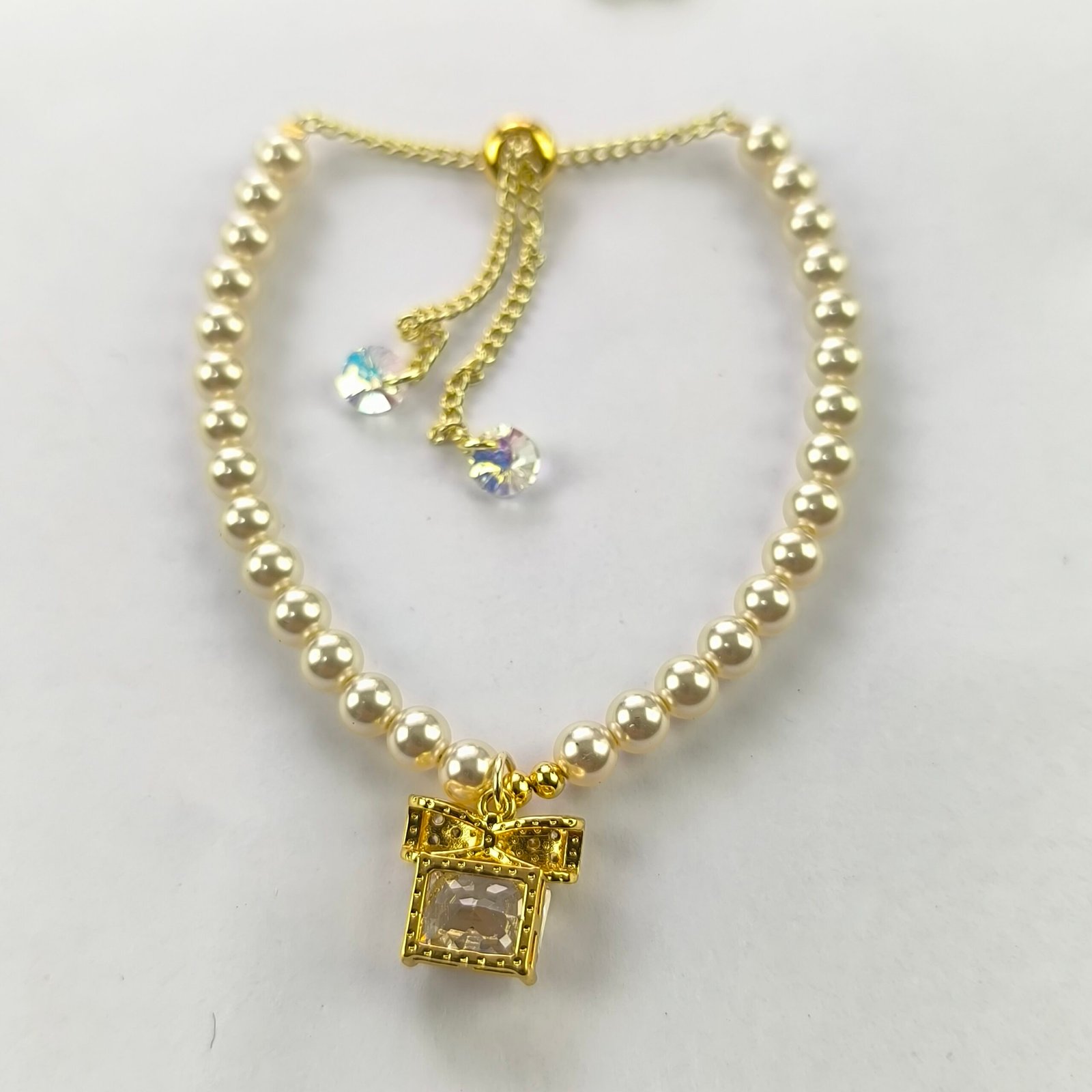 Pack de 12 pulseras tipo perlas con dijes surtidos en acabado dorado, diseñadas para ofrecer una combinación perfecta entre elegancia, variedad y facilidad de venta.