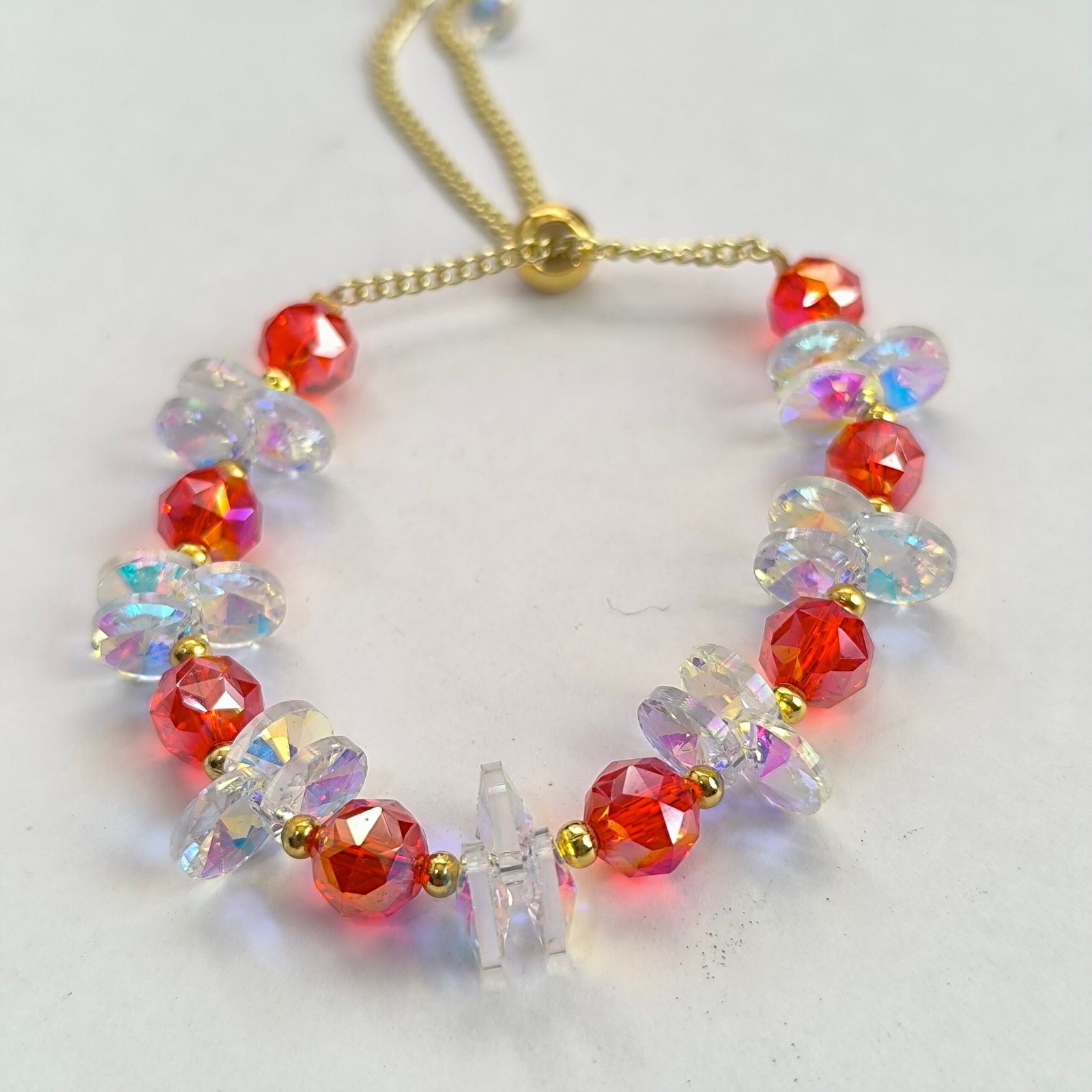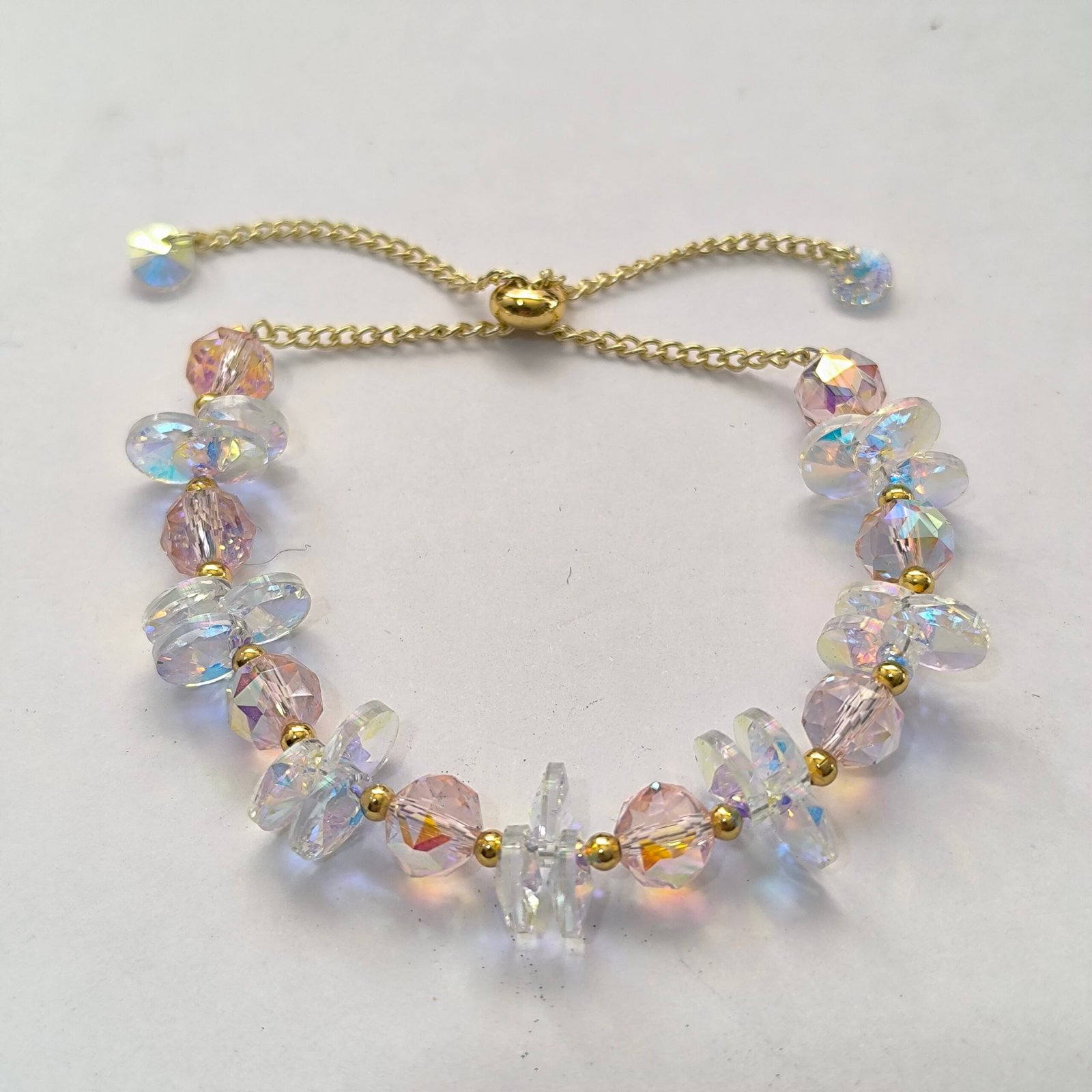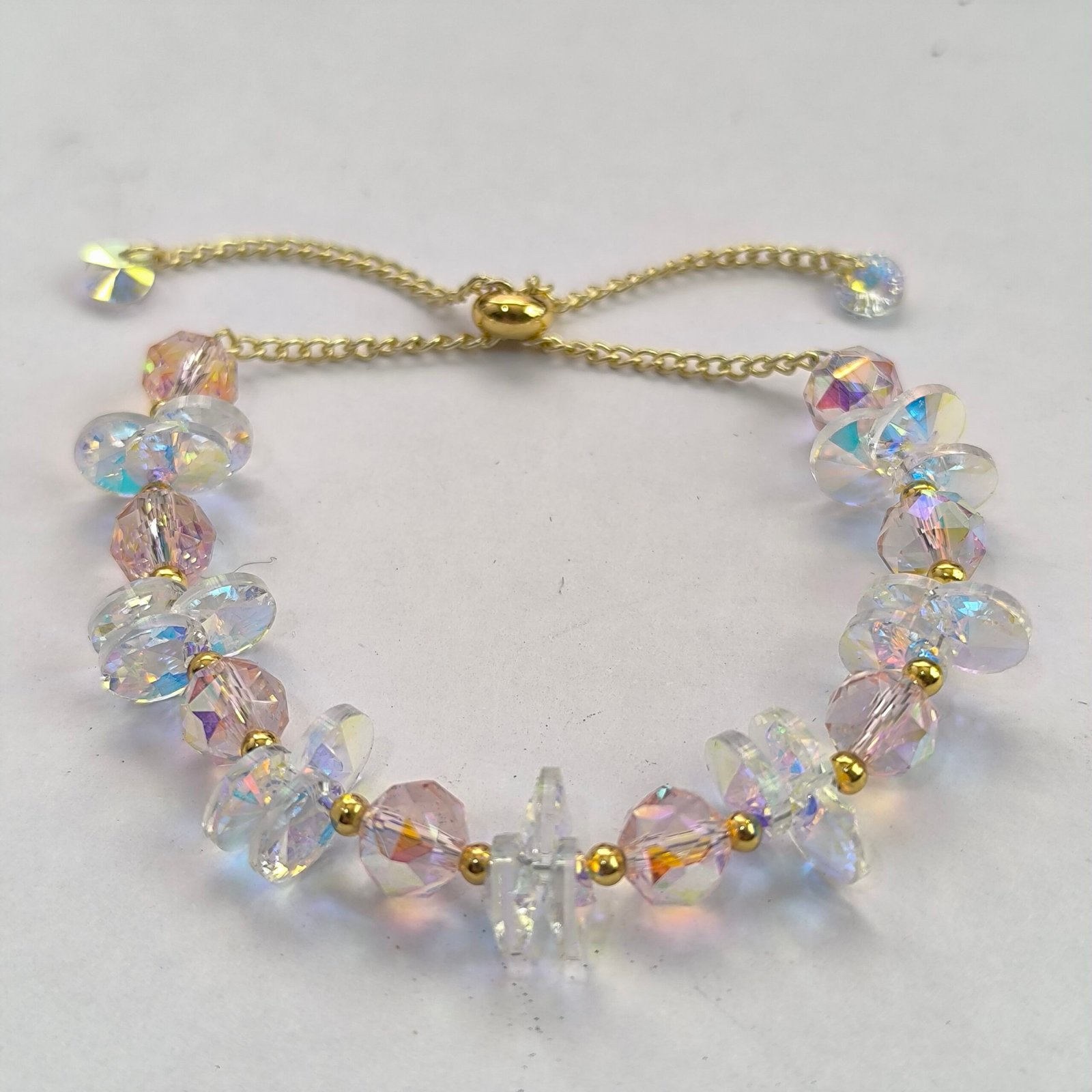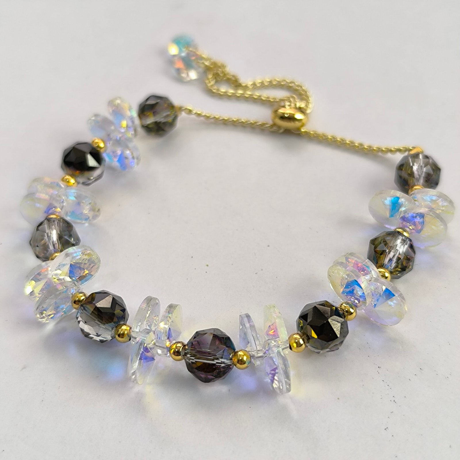 Nombre del producto Pulsera de cristal facetado iridiscente con chips intercalados ajustable (varosky) — Coleccion 2