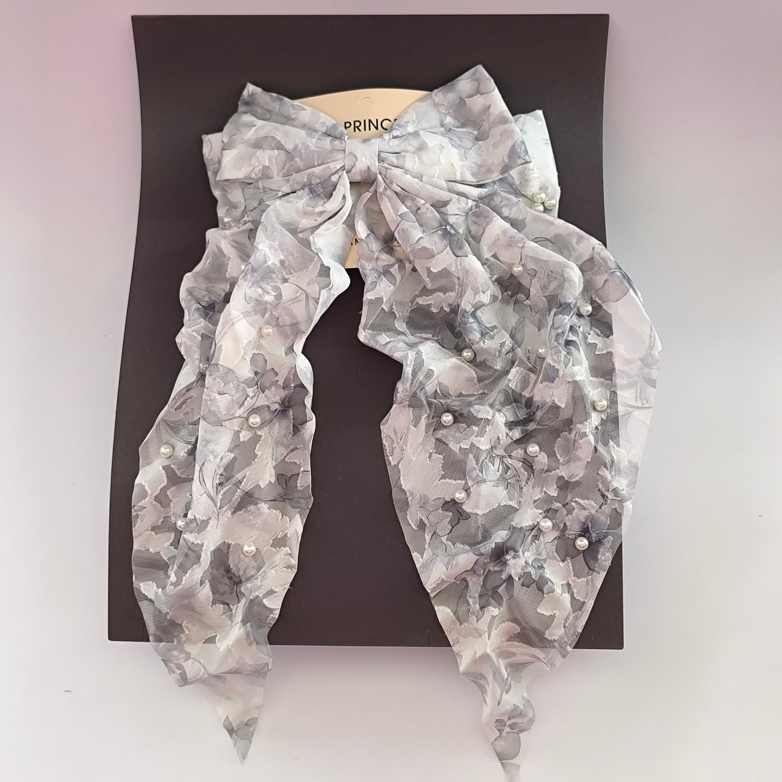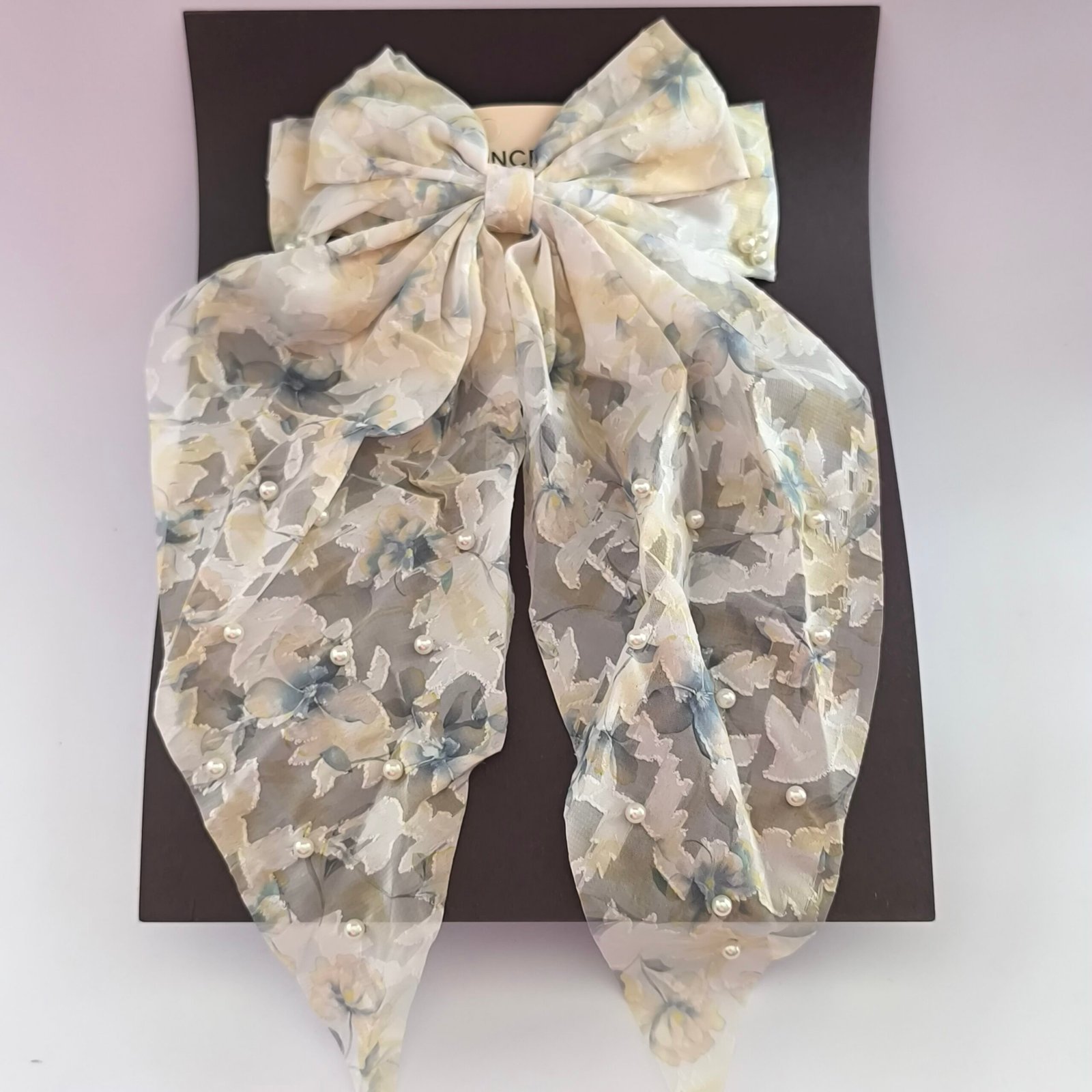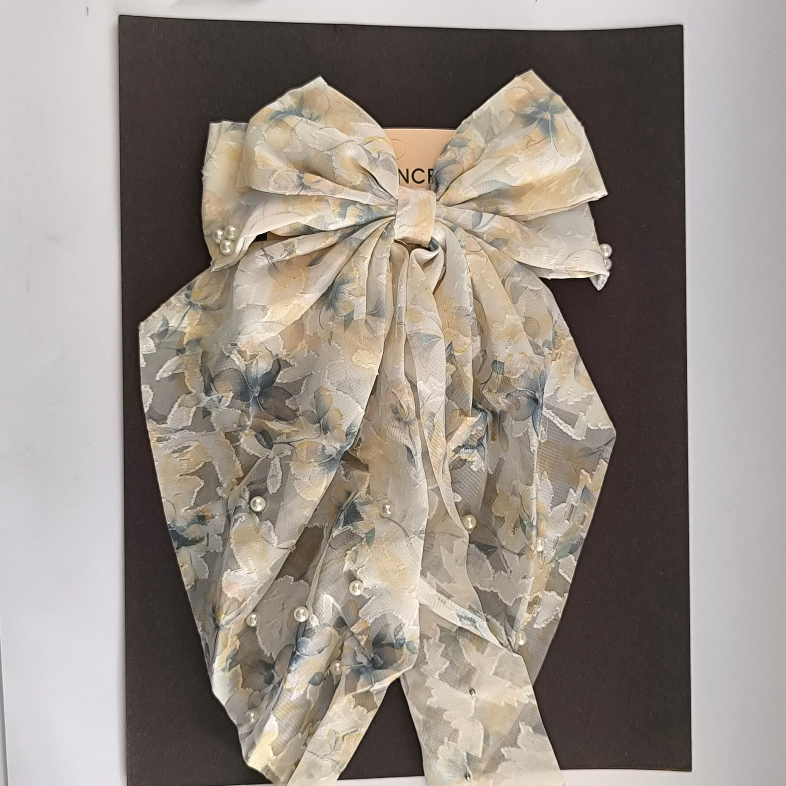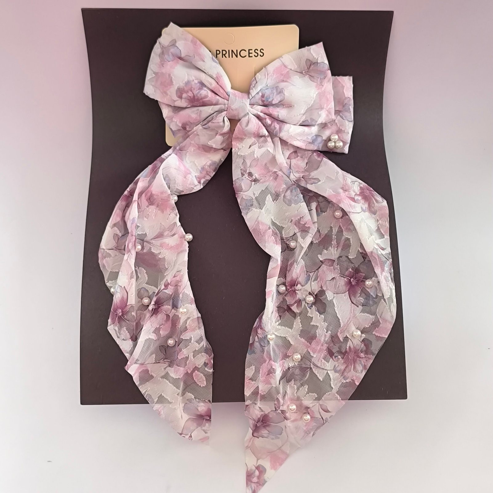 Este set incluye 12 moños para cabello con diseño floral elegante, elaborados con tela ligera estampada que crea un estilo delicado y moderno. Cada moño presenta detalles de pequeñas perlitas decorativas que aportan un toque sofisticado al accesorio.