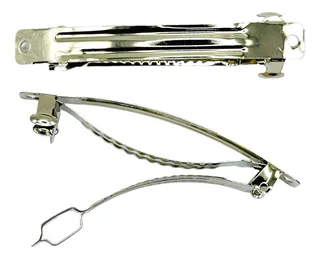 Este set incluye moños grandes para cabello con diseño elegante estilo corbata, montados sobre una traba metálica tipo clip que permite sujetar el cabello con firmeza.