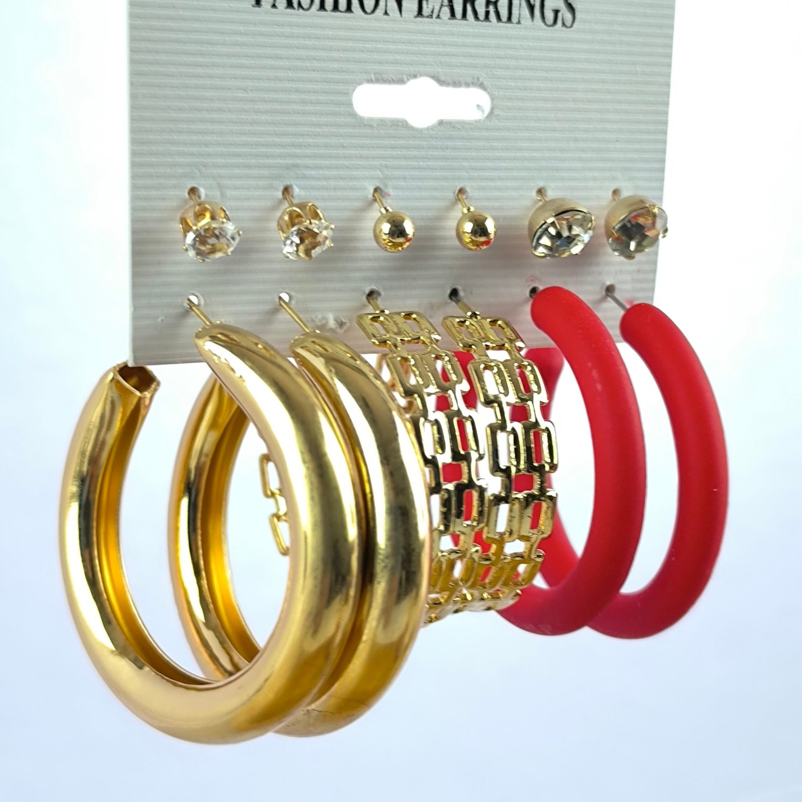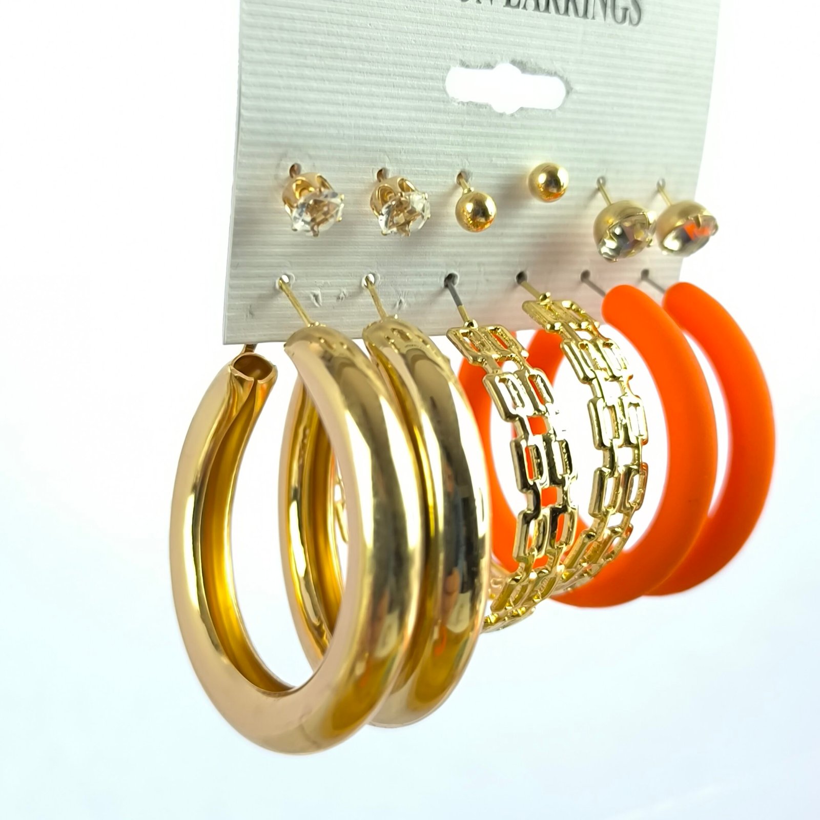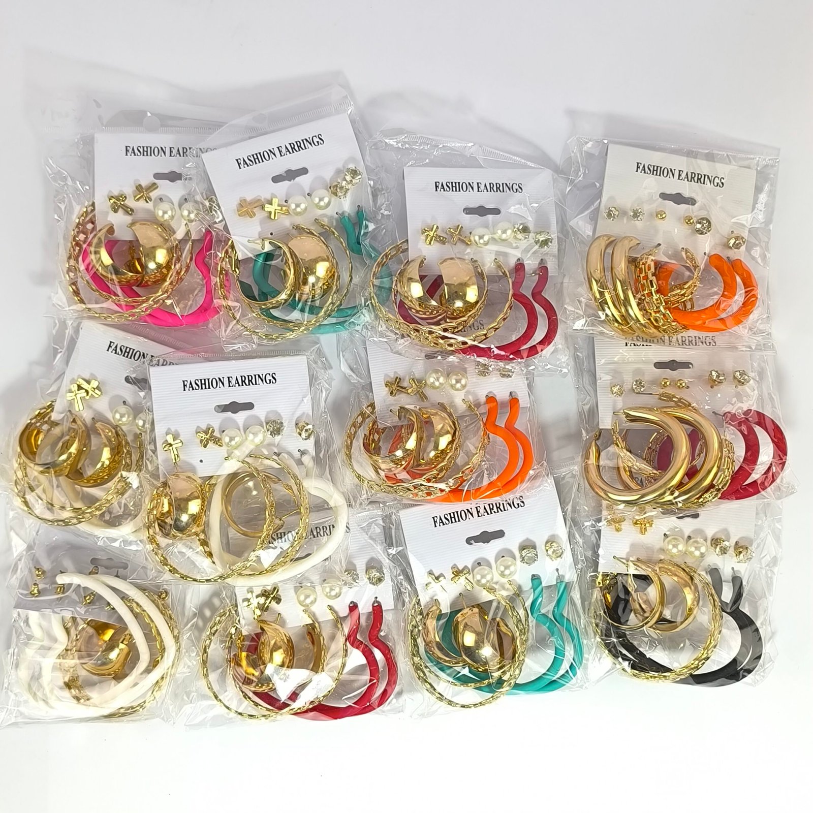 Set completo de aretes surtidos diseñado para ofrecer variedad y estilo en un solo paquete. Cada tarjeta incluye combinaciones de aretes con diferentes tamaños y acabados, permitiendo crear múltiples looks sin necesidad de comprar por separado.