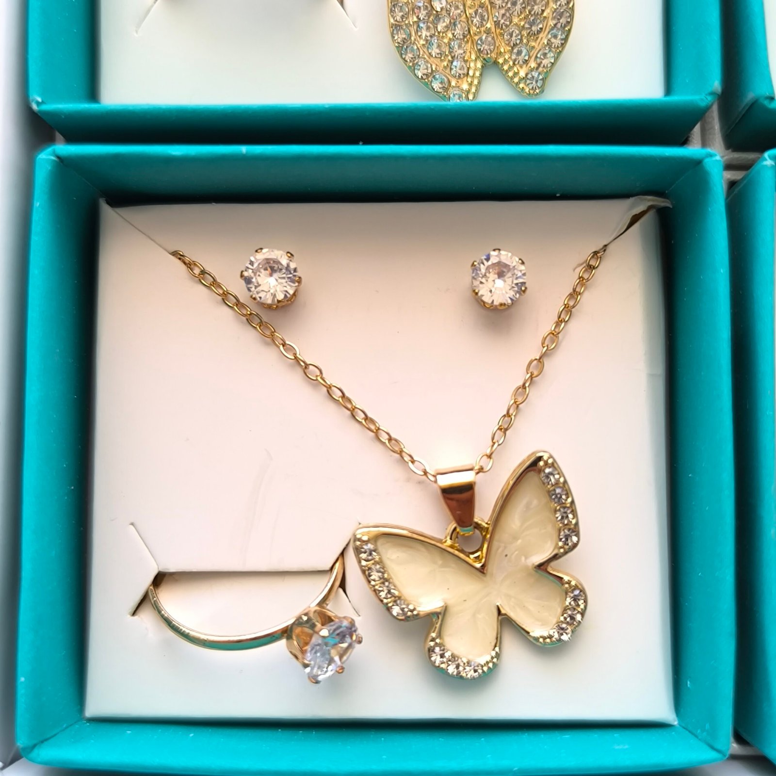 Set de Joyeria Dorada con Mariposas y Diseños Elegantes para Mujer | 12 Unidades por Mayor