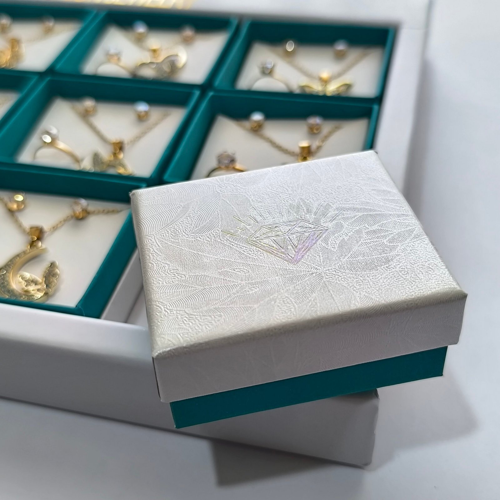 Este set de joyeria es uno de esos productos que no necesitas explicar demasiado, entra por los ojos. Cada unidad incluye un collar con dije decorativo, un par de aretes tipo topo con piedra brillante y un anillo con diseño elegante, todo presentado en cajita individual lista para exhibicion o entrega.