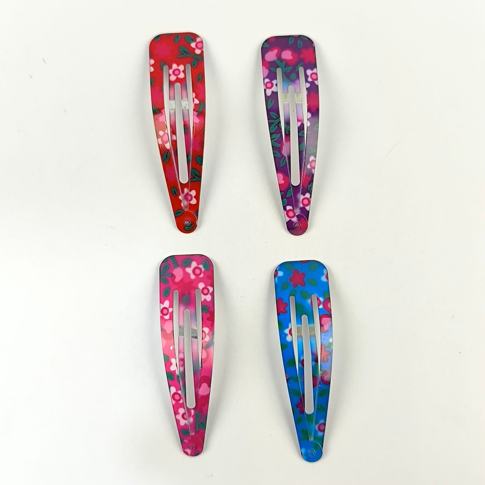 Este set incluye 10 trabas metálicas para cabello con un diseño decorativo floreado en distintos colores. Su estilo colorido y juvenil las convierte en un accesorio ideal para complementar peinados y mantener el cabello sujeto de manera práctica.